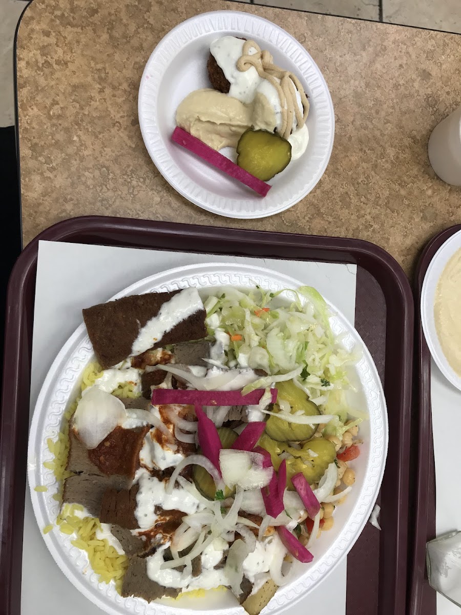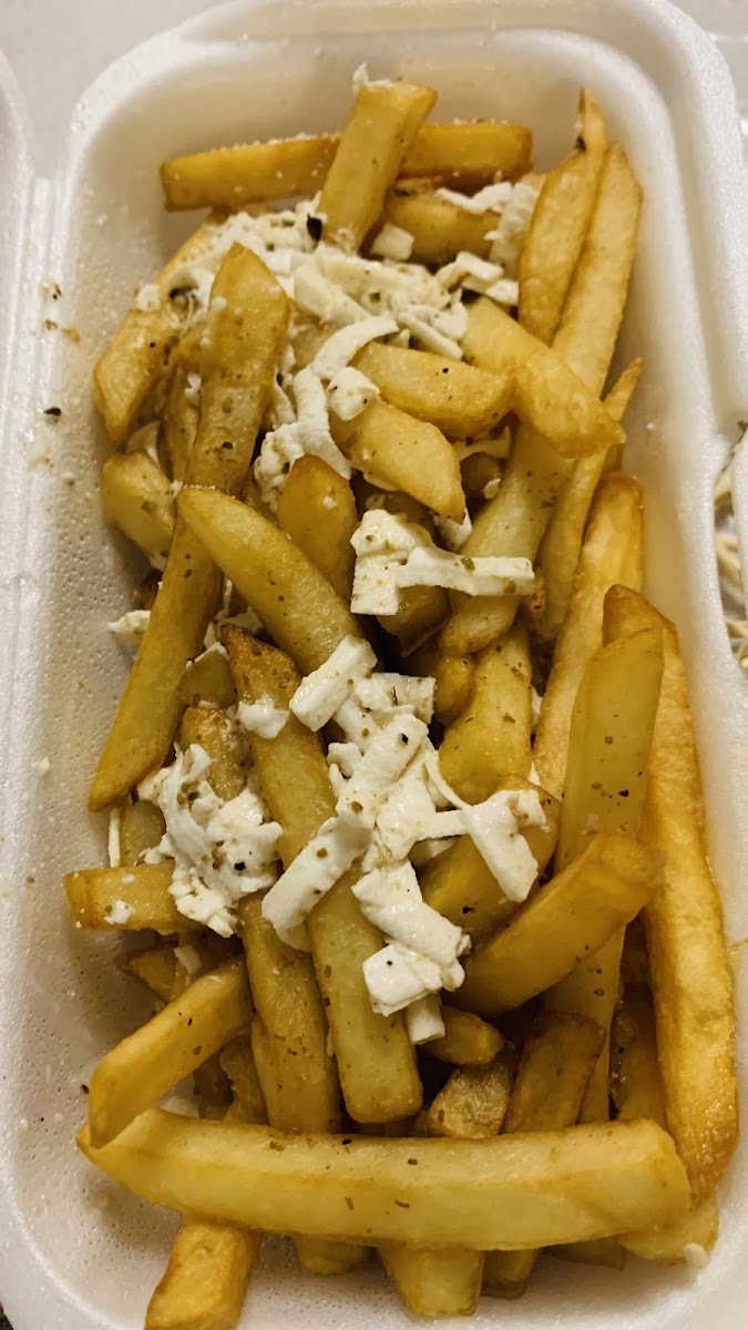 For fans of classic Mediterranean street food, Shawarma Town offers a fantastic Halal Gyro. This dish is prepared with the finest cuts of meat, perfectly seasoned and cooked to perfection, offering a tender, juicy bite with every mouthful. Another must-try is the Greek Fries, a crispy, golden side dish topped with tangy feta cheese and a drizzle of savory sauce. These fries are the perfect complement to any meal, adding a burst of flavor to your dining experience.